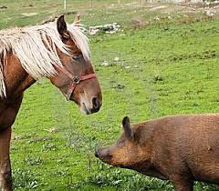 Estaban en un establo un caballo y un puerquito, el pobre caballo estaba muy enfermo. En eso llega un veterinario junto con el dueño y revisa al caballo y le comenta al dueño fuera del establo: